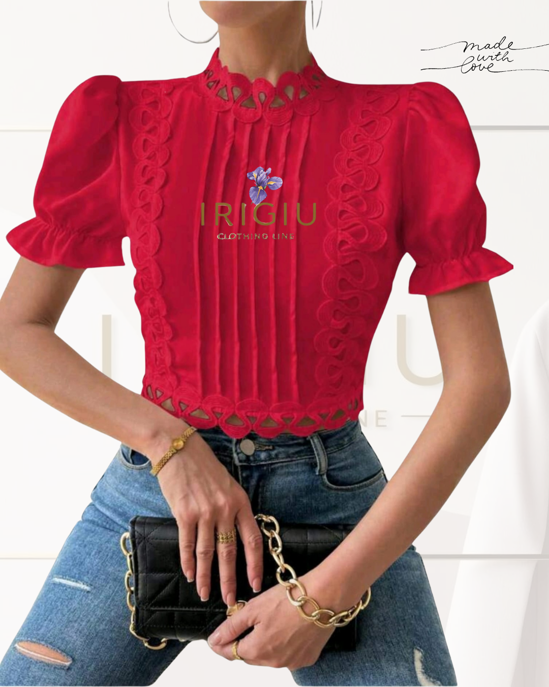 Questa camicina minimalista in rosso, disponibile anche in bianco, unisce eleganza e modernità con un taglio vita corto e maniche a palloncino. Perfetta per chi cerca uno stile raffinato e contemporaneo, valorizza ogni outfit con un tocco di tendenza senza rinunciare alla semplicità.